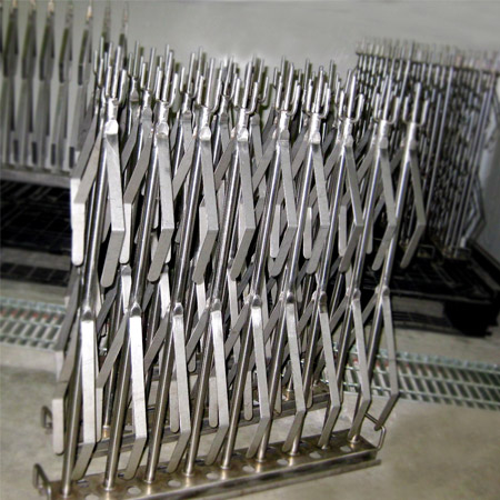 Làm bằng vật liệu sắt mạ kẽm hoặc thép không rỉ, dùng trong sản xuất