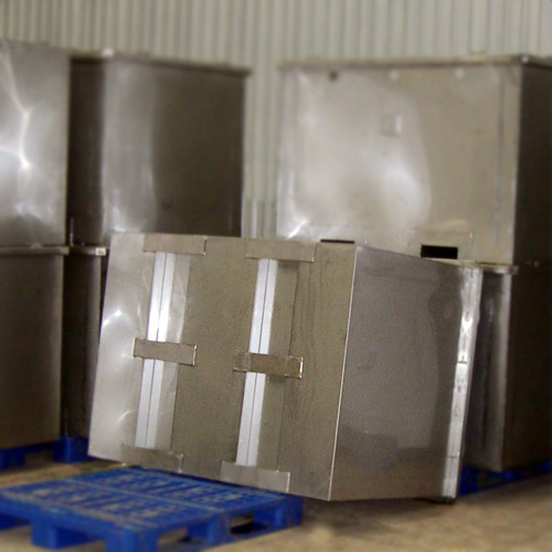 Làm bằng vật liệu thép không rỉ, dùng để chứa cá, bảo quản trong Kho Lạnh, có thêm chức năng rã đông