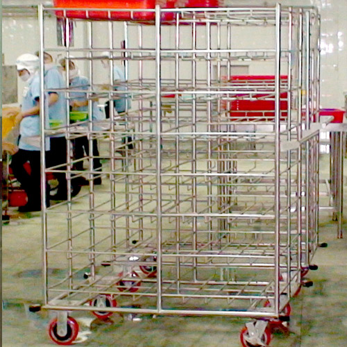 Làm bằng vật liệu thép không rỉ, dùng cho công việc vận chuyển thực phẩm trong quá trình chế biến